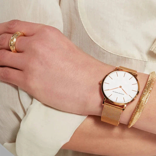 Goldfarbene Damenuhr Mit Hannah-Martin-Armband.
